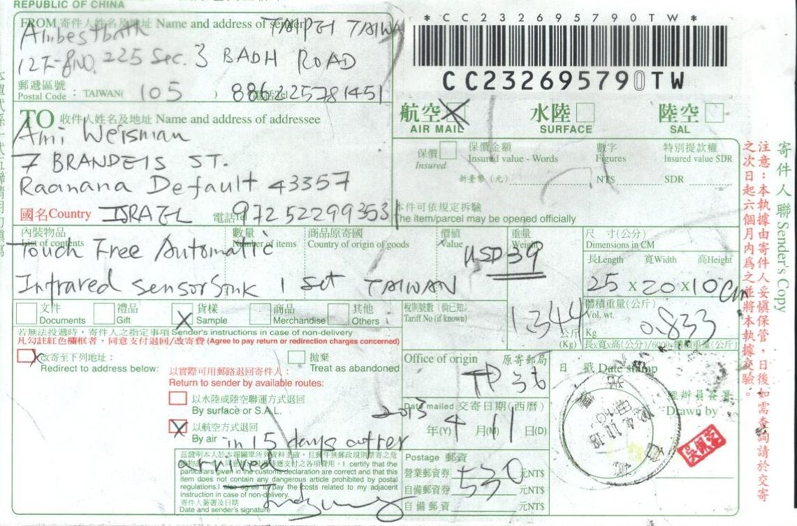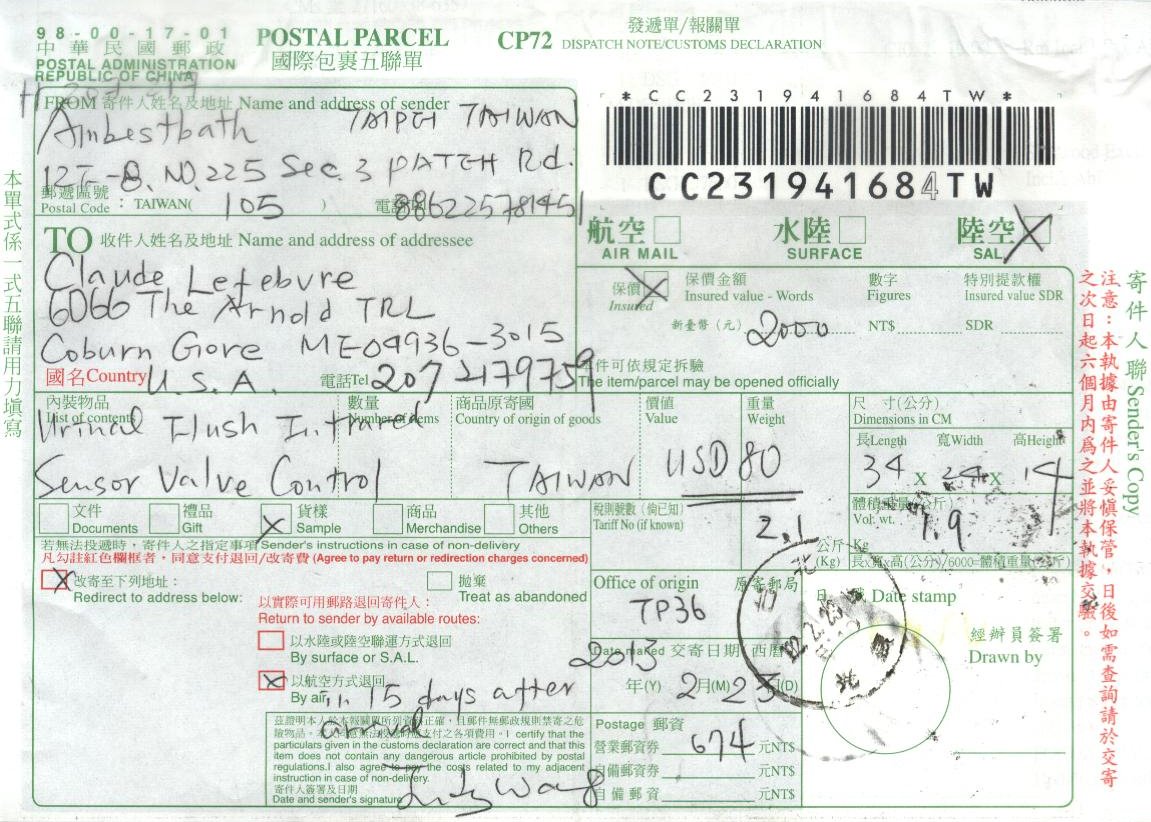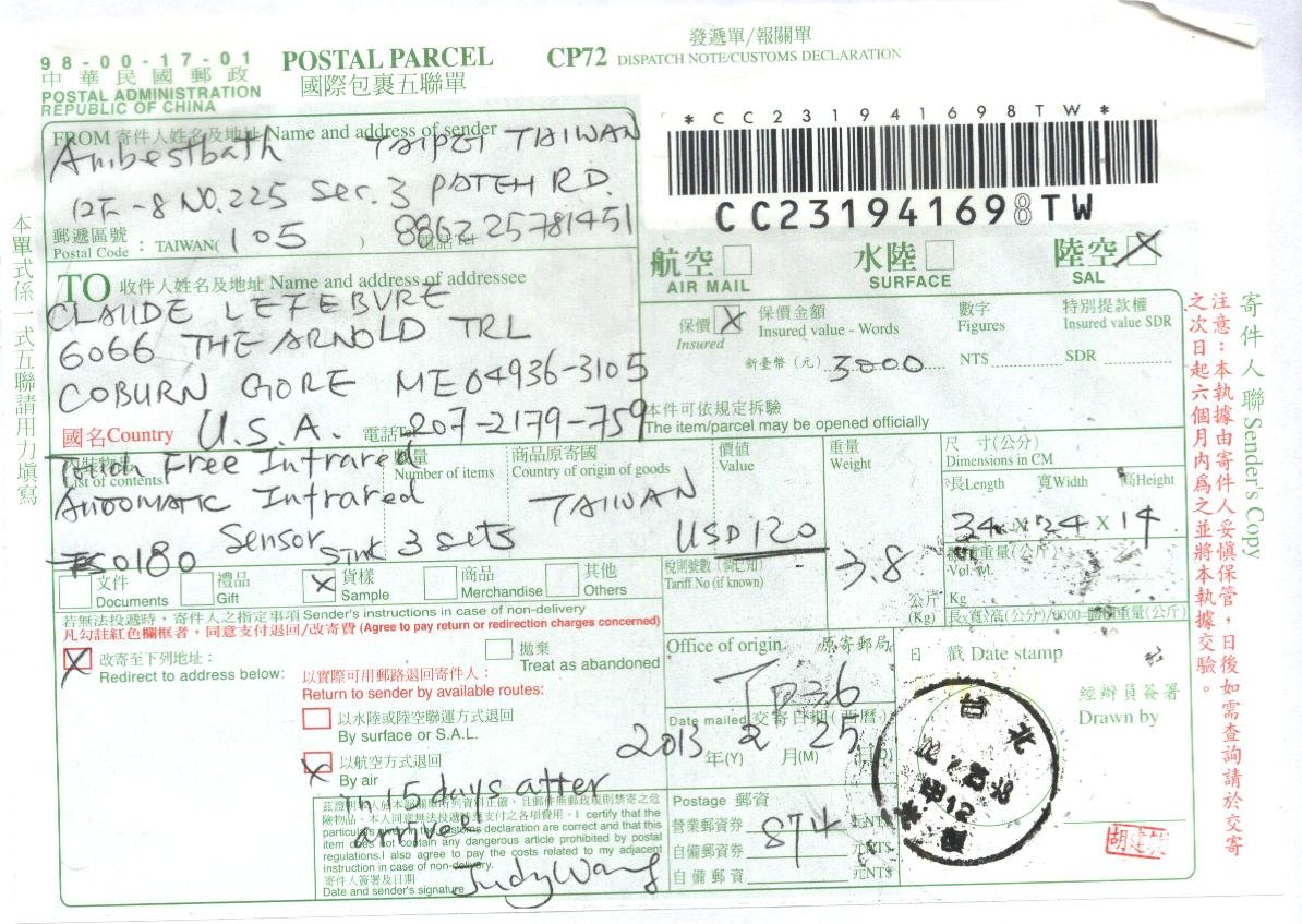 Post office Receipt Feb. 25
